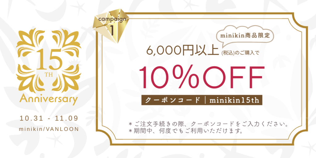 minikin商品6,000円以上のご注文で、10%OFF(お直し品を除く)