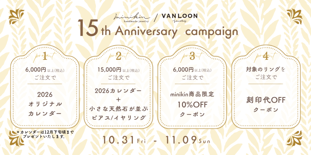 11月はminikin jewelryのアニバーサリー。今年で15周年を迎えます。