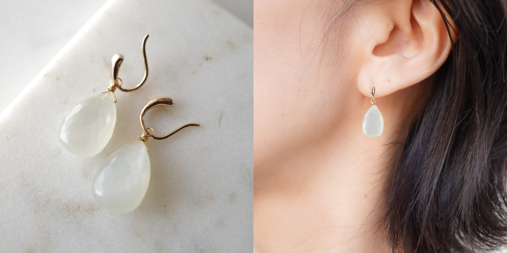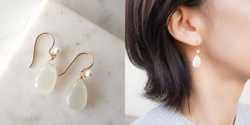 白い天然石ならではのやさしい色合いは、装いを選ばず、さりげなく上品な印象を添えてくれます。